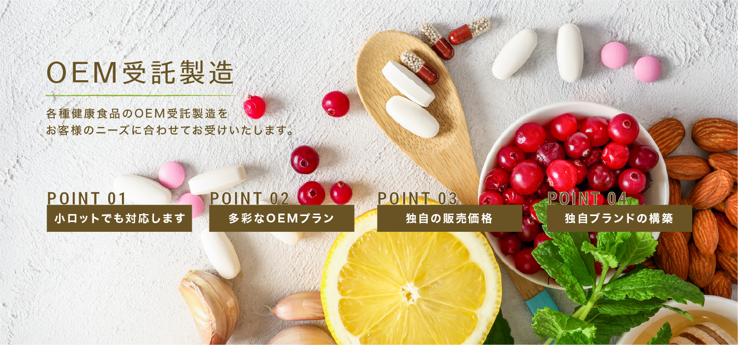 こだわりの高品質、徹底した商品管理で、お客様の健康食品作りをお手伝いします。